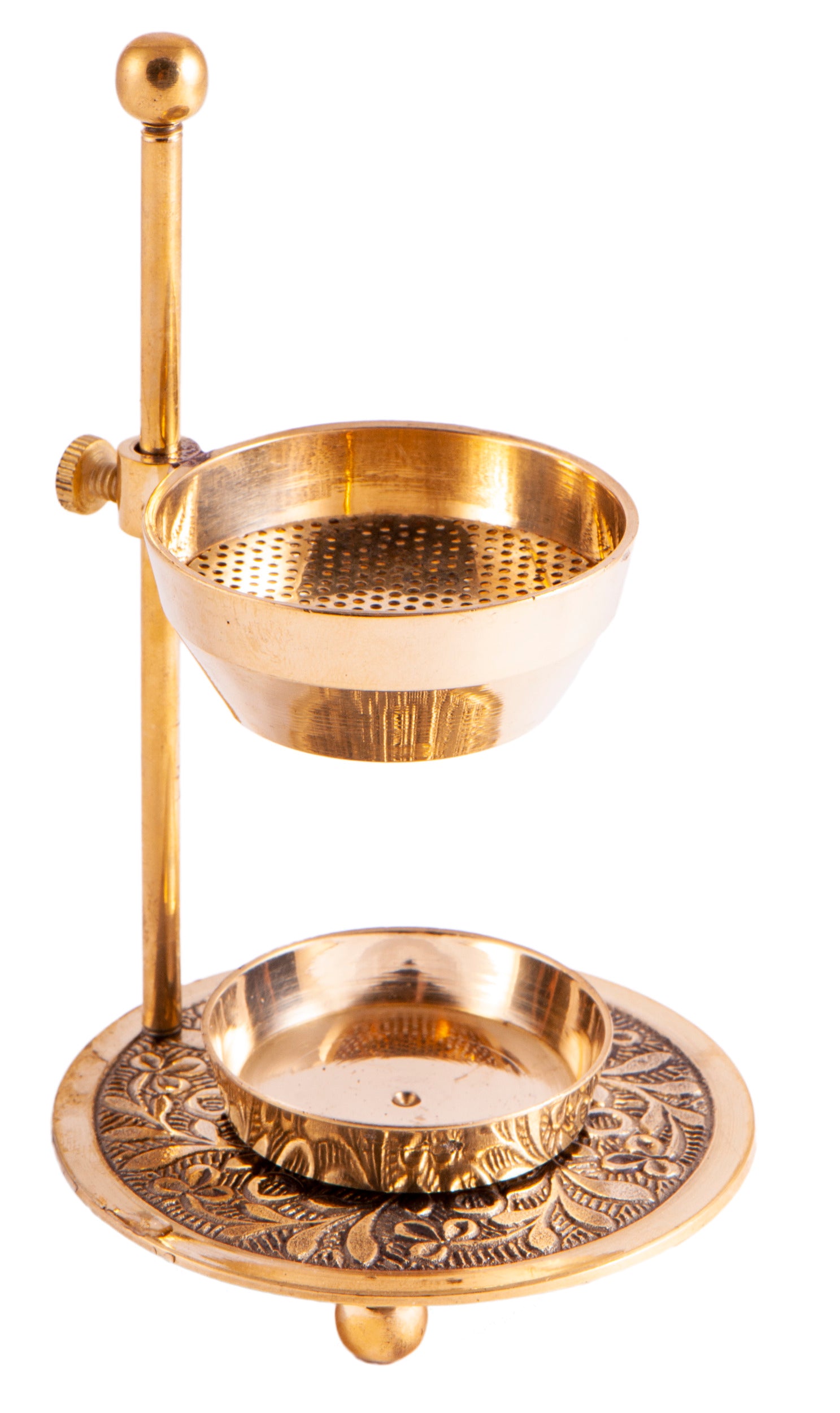 Manche Kräuter brauchen etwas mehr Abstand zum Teelicht als andere. Auch Harze reagieren je nach Härte unterschiedlich. Mit diesem Siebräuchergefäß kann man die Höhe je nach Bedarf variieren und gerne auch experimentieren.